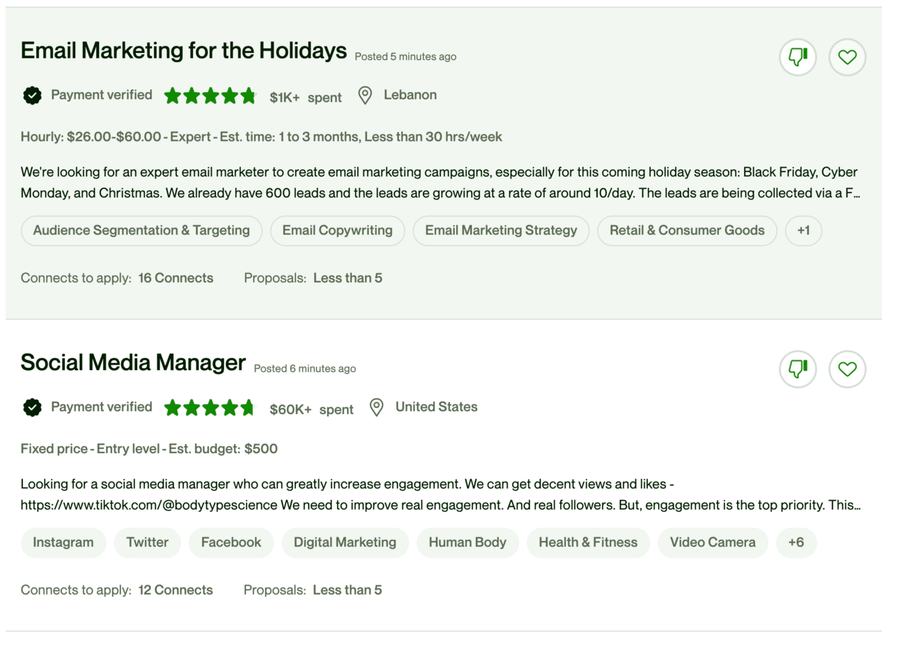We can do this on Upwork by seeing what jobs clients are listing and seeing whether we have the skills to do them.