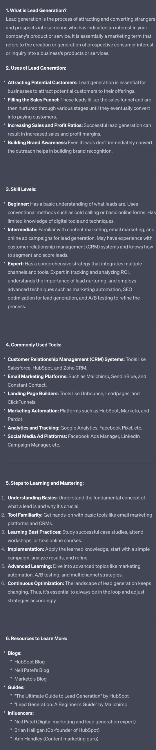 What are good blogs, guides, influencers to look into in order to to learn moreI’ve used “lead generation” as an example.