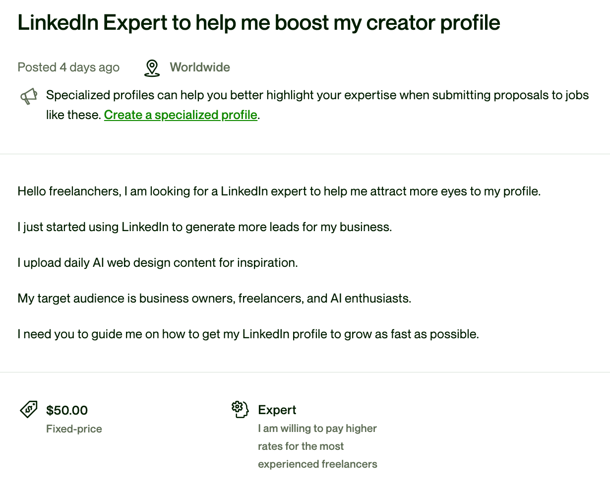 Most people on Upwork just use a copy/paste template. Don’t do that. We’re going to do better.