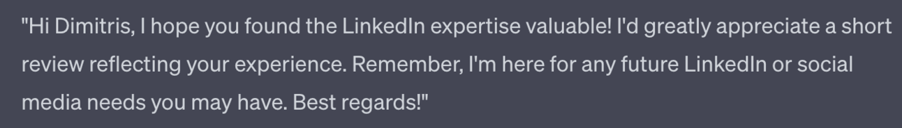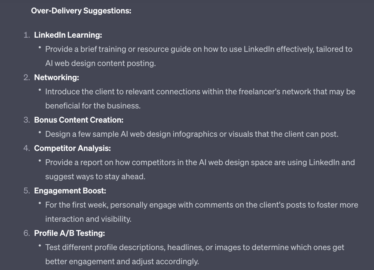 First up make sure you overdeliver - go the extra mile. How you do this will depend on the service obviously but here’s a nice simple prompt to give us some ideas.