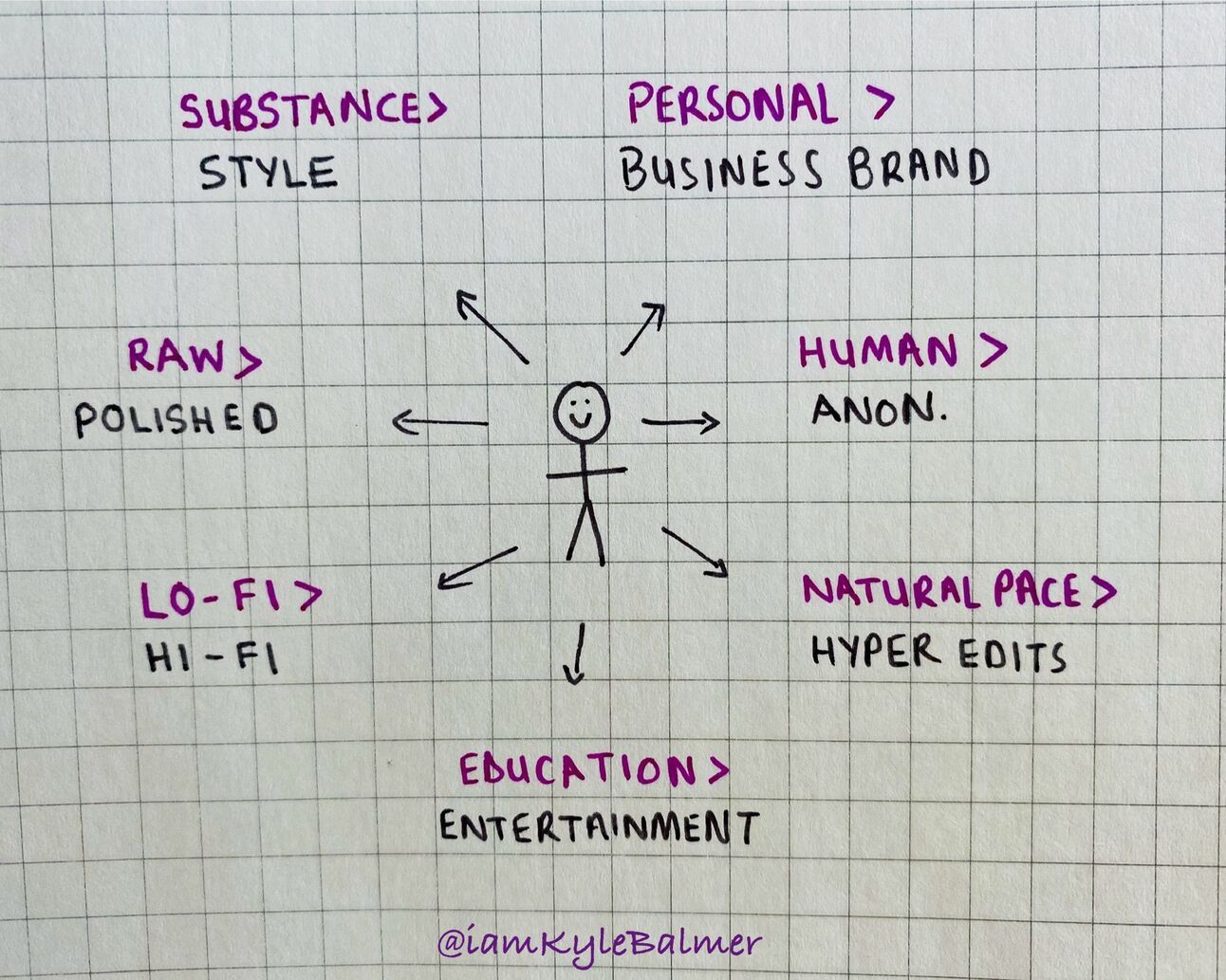 Instead of relying on the business’ brand you utilise yourself - your words, your image, your personality, your story, your journey. All to build an audience.