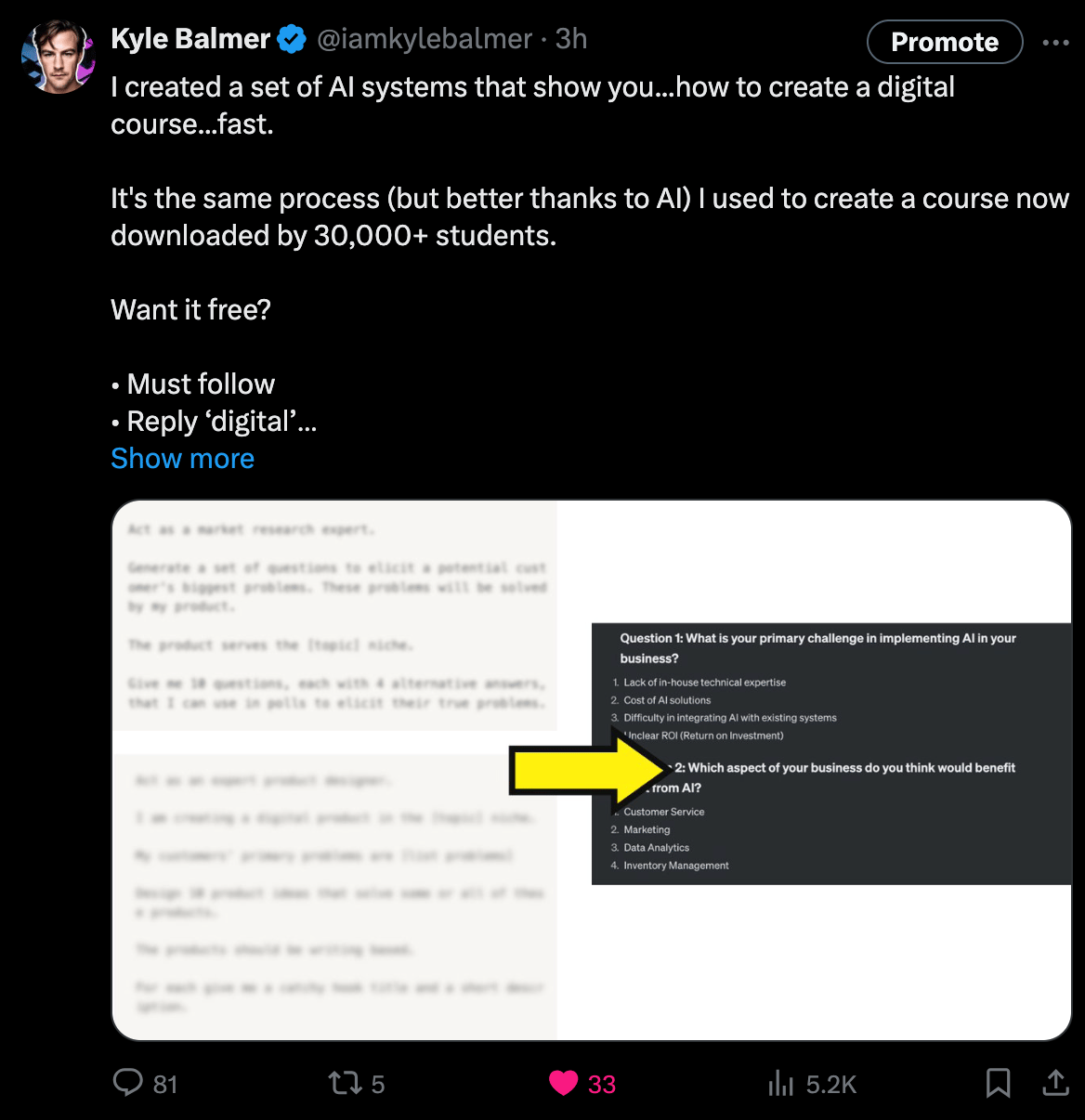 And that’s just Twitter. The same lead magnets can be deployed on Instagram, Tiktok etc. to expand reach.