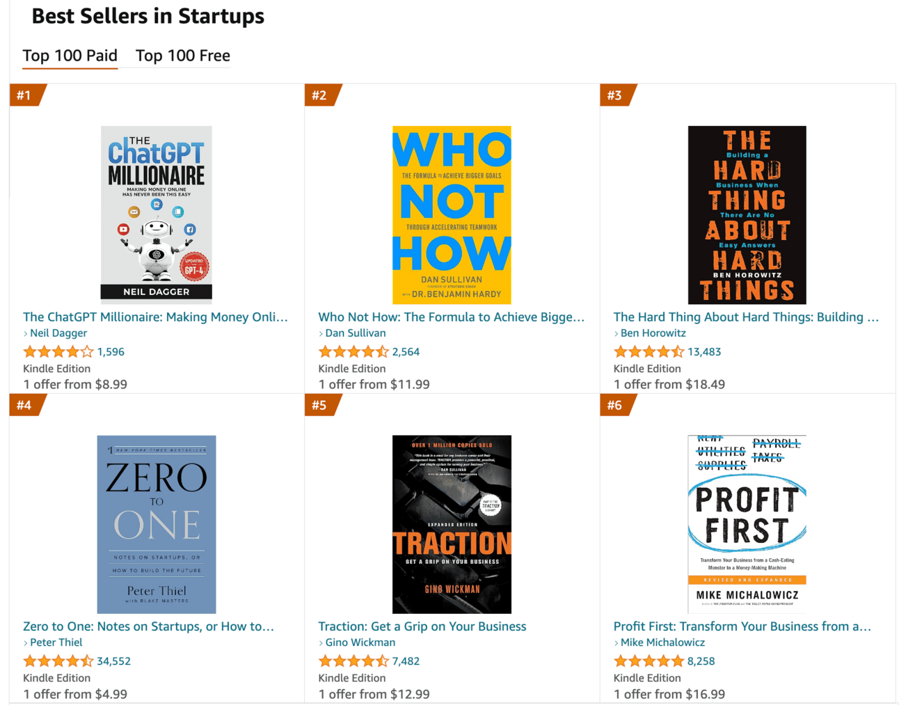 The top result here is a book called “The ChatGPT Millionaire”. There’s no Sponsored tag next to this listing so it’s really #1 for this term.