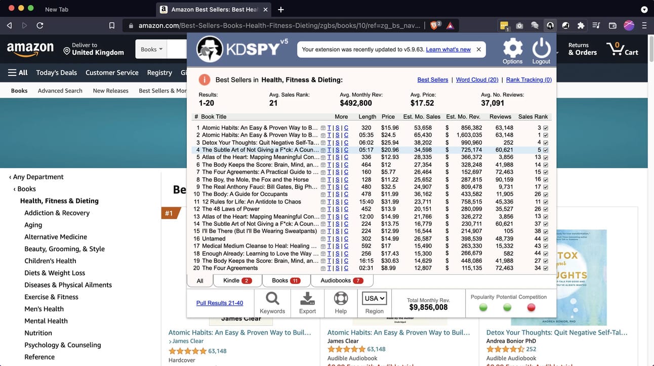 KDSpy will take your keywords or categories and tell you the total sales, the popularity of the topic, the competition and the potential for revenue. It uses a traffic light system (in the bottom right) to make it easy - red is unattractive, green is great niche.