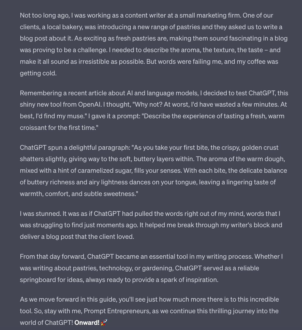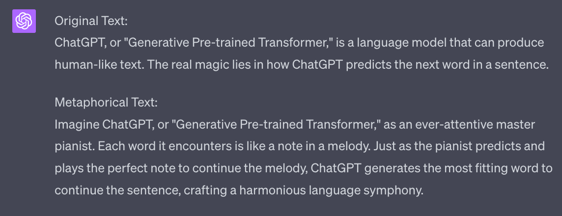 This also helps us make ChatGPT’s output less “generic” and sound less like, well, ChatGPT.