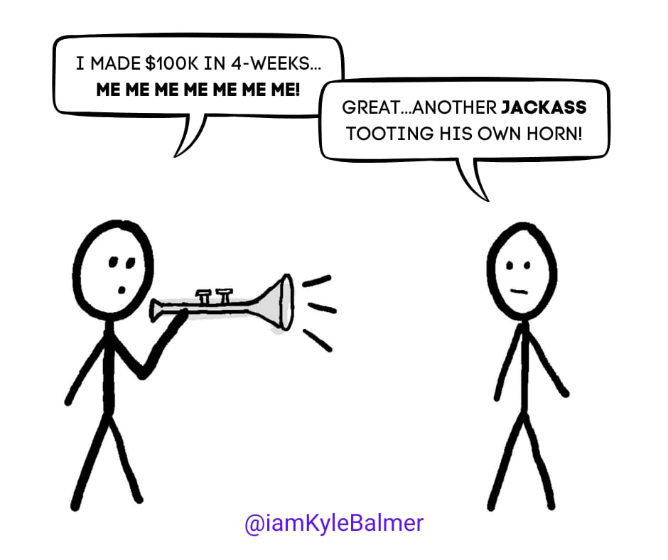 The art is in tooting your own horn without sounding like a jackass. And importantly, showing people why they can have similar successes (because they can!).