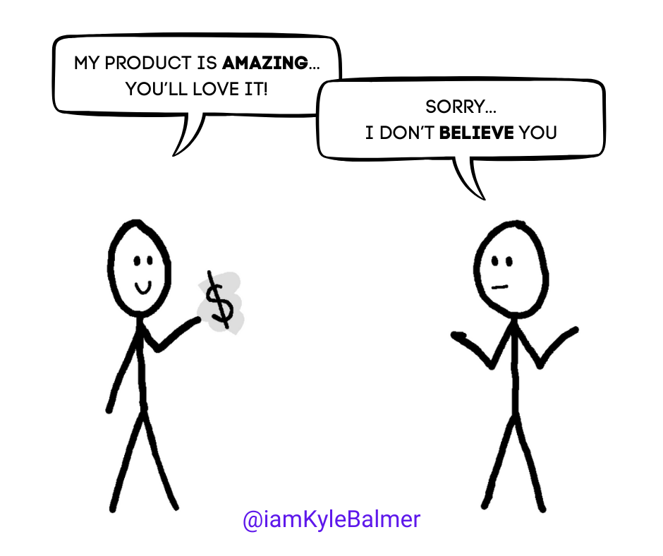 This is where social proof comes in. Social proof is what OTHER people say and think about us and our offers. It's infinitely more compelling than any amount of self-promotion. It's the difference between saying "Trust me, I'm great!" and "Don't take my word for it, listen to what these happy customers have to say."