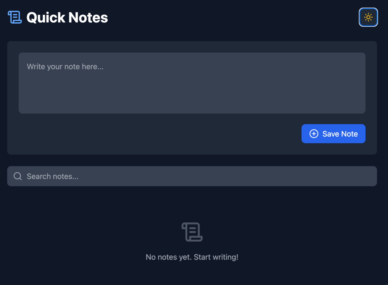 Dark/light mode toggle added. Save note button colour is blue. And a search bar has been added.