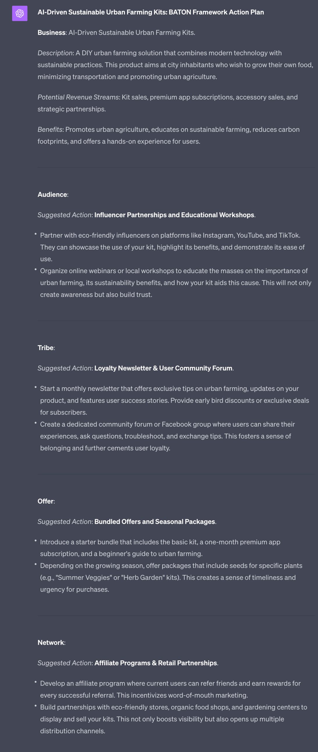 ChatGPT uses the framework to suggest alternatives for each stage of BATON.