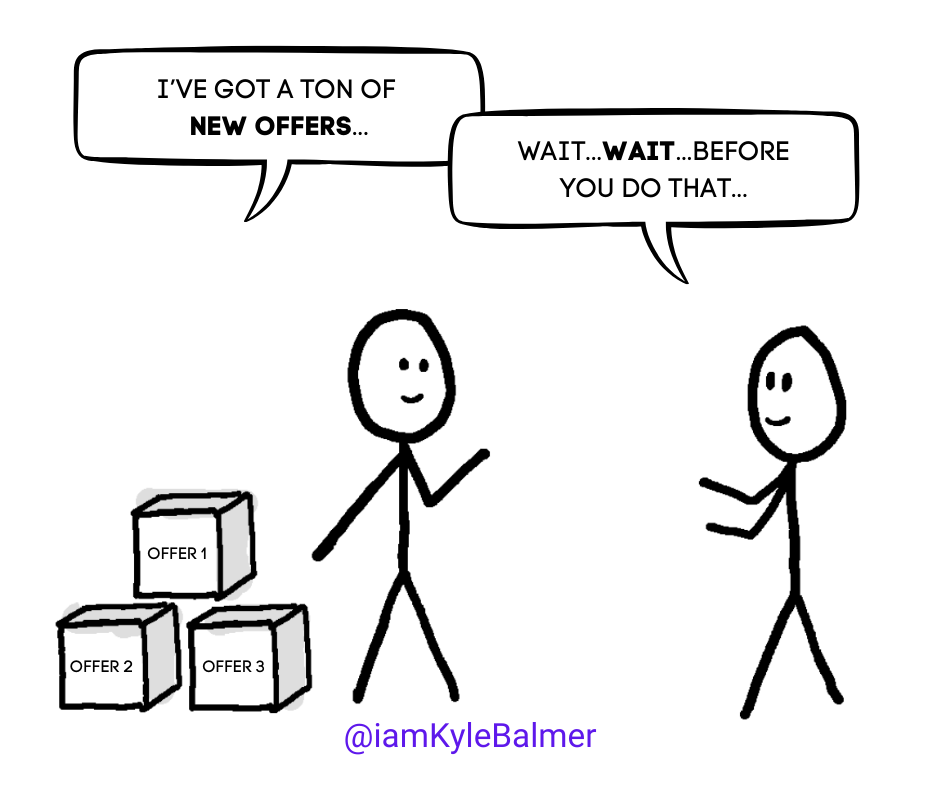 Before we dive in, let's address a crucial point: we're focusing on selling our existing offers to new markets, not creating new offers for new markets. Why? Because creating new offers for new markets introduces double the risk - offer risk (it's an untested offer) AND market risk (trying with a new market, a new audience, a new customer).
