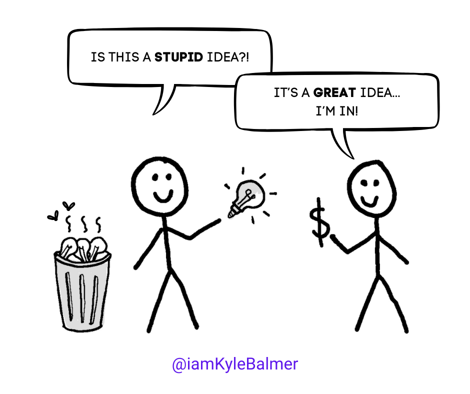 For our Audience, we'll put out a tweet saying, "I'm thinking of launching XYZ. Is this a stupid idea or something you'd be interested in?" If you're more video-oriented (Instagram or TikTok for example), do the same basic message in a short video - "Here's what I'm thinking, roughly what it'll look like. Are you interested?"