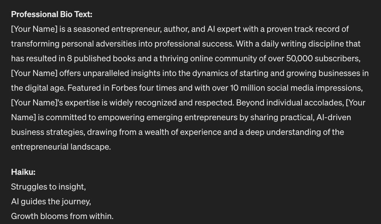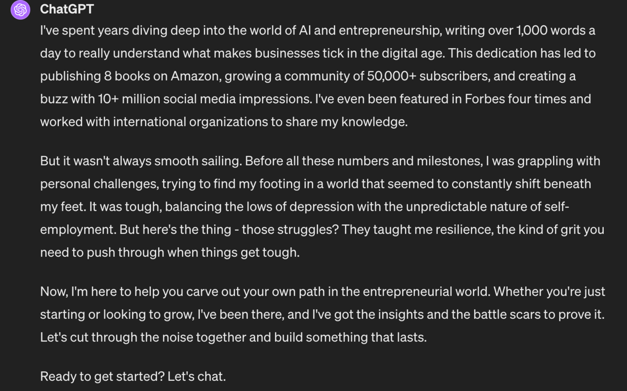 We’re going to use ChatGPT to draft our personal story and then work on converting it into our own words.