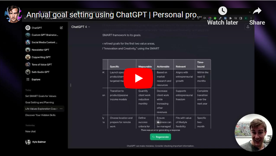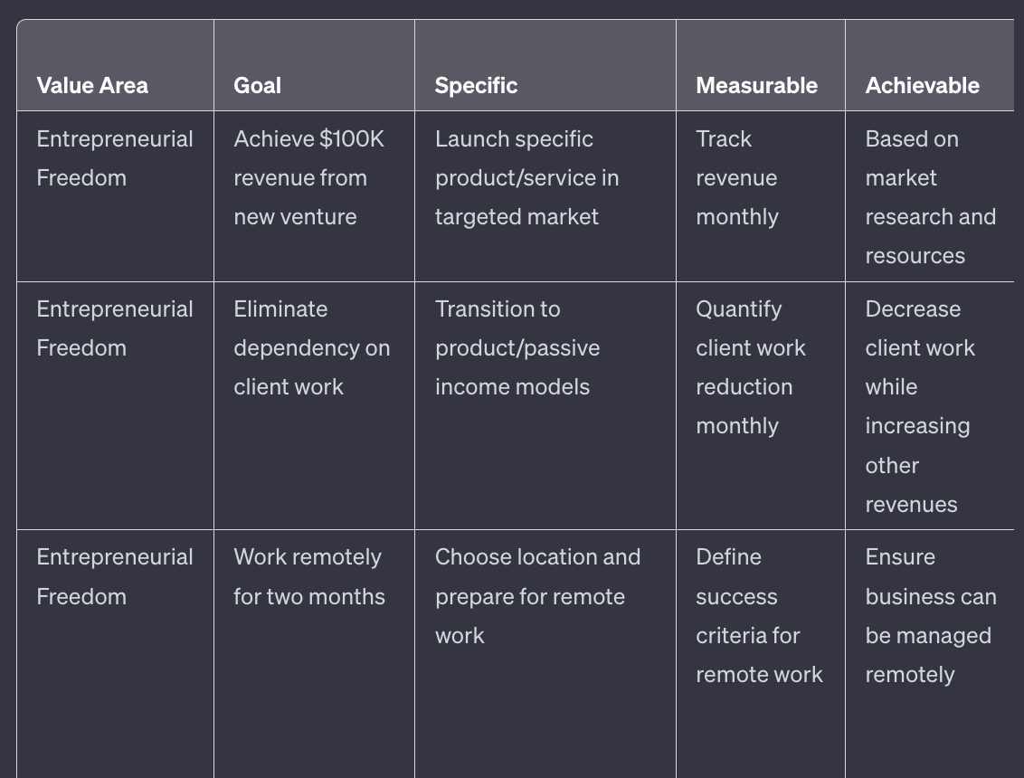 Anything look out of place in that table? Edit it or straight up delete it. No problem. These are your goals, not ChatGPTs!