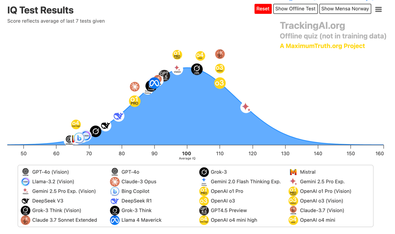 It regularly subjects AI models to IQ-style tests. Whilst this isn’t a foolproof benchmark (spoiler: there aren’t any) it’s a good quick look at the smarter models.