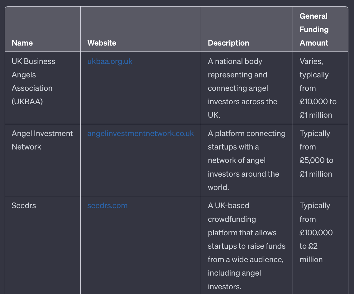 I asked specifically for angel investors and ChatGPT did the research for me: