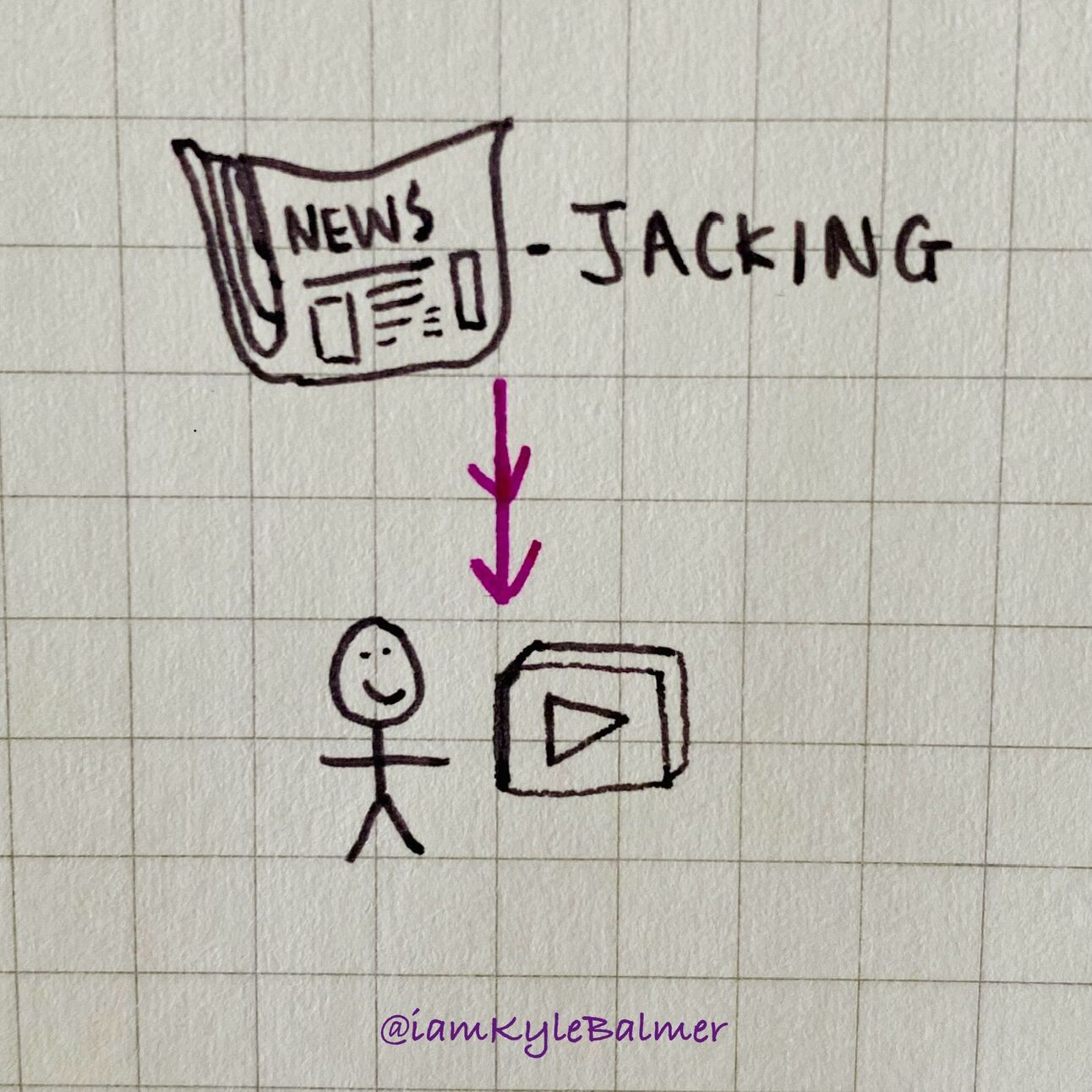Newsjacking is when we hop on board something that is trending and leverage that existing attention to build an audience.