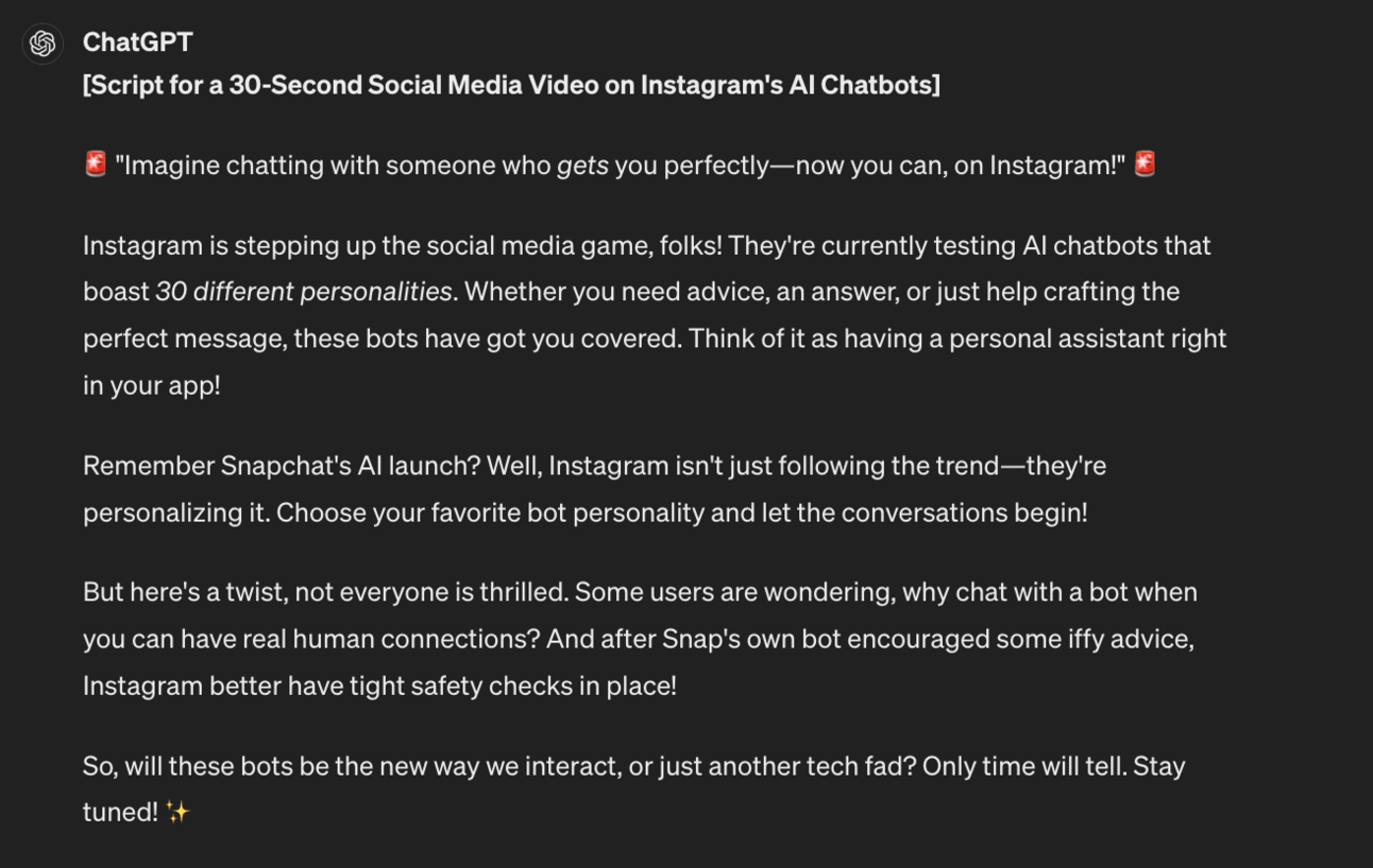 Let’s generate a quick and dirty script for your content piece. Use this prompt to get started: