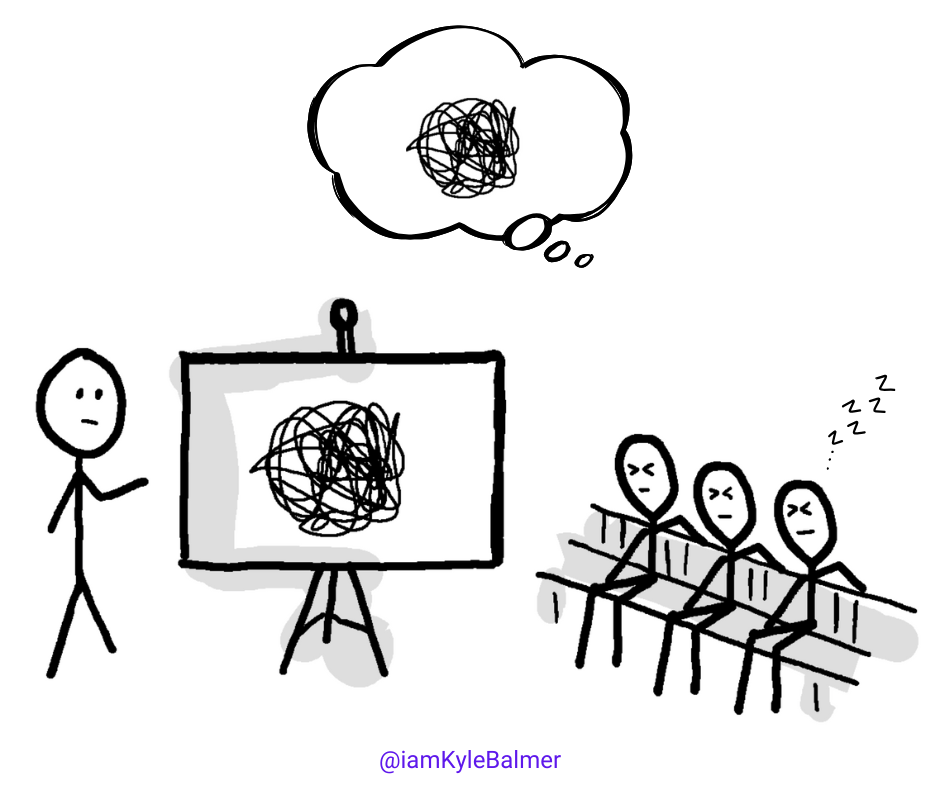 My slides looked like a Wikipedia page had exploded. My attendees had that glazed look. And I was desperately trying to cram in every single piece of knowledge I thought they needed.