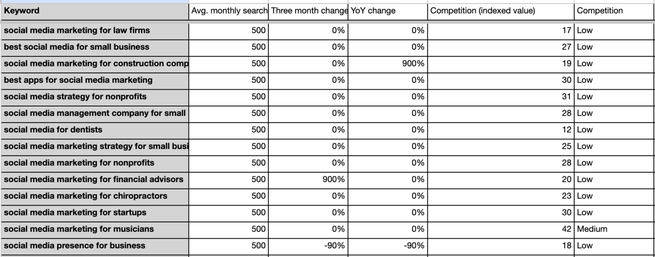 For instance “social media for yoga studio” would be a search that an owner of a yoga studio would use.