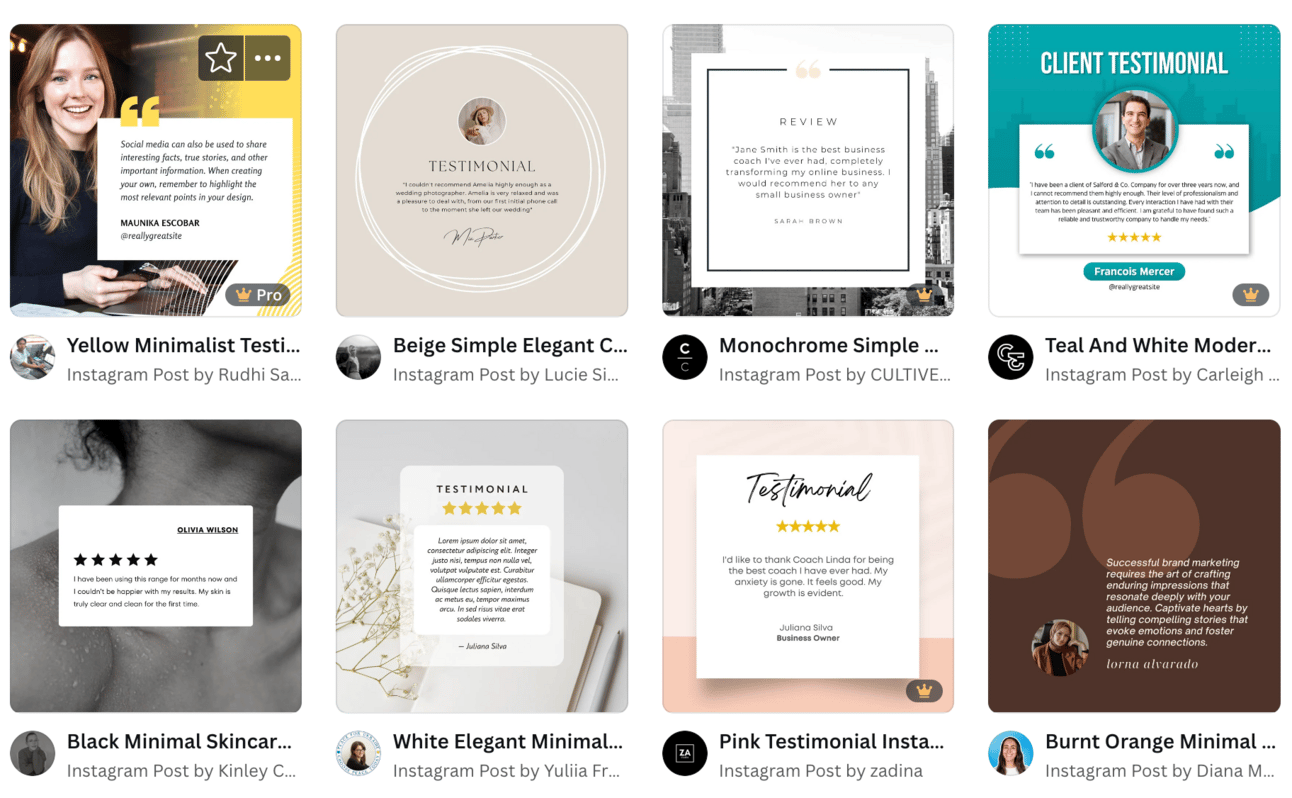 To make these yours you’d do some branding adjustments and then simply copy paste testimonial text into the template.