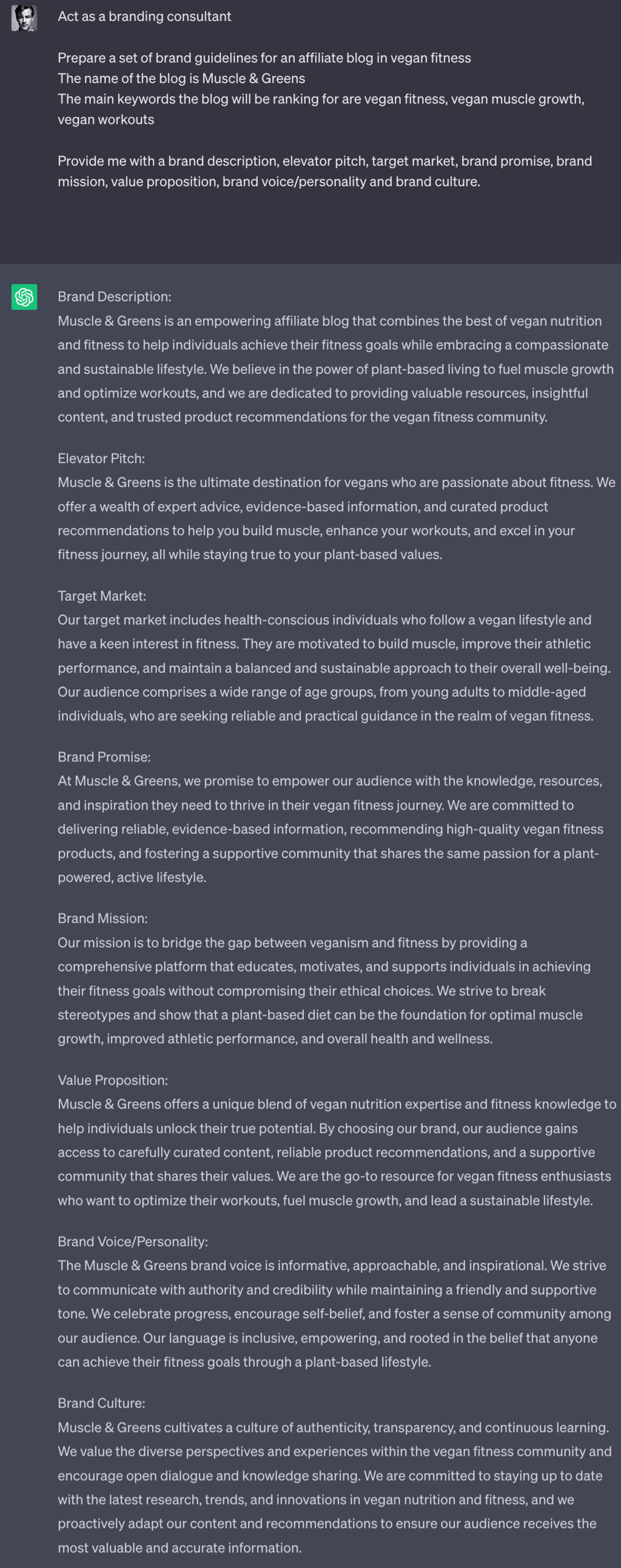Adjust as required, specifying changes directly to ChatGPT until you are happy with each section. We’ll be using all of this in the next section so make sure you