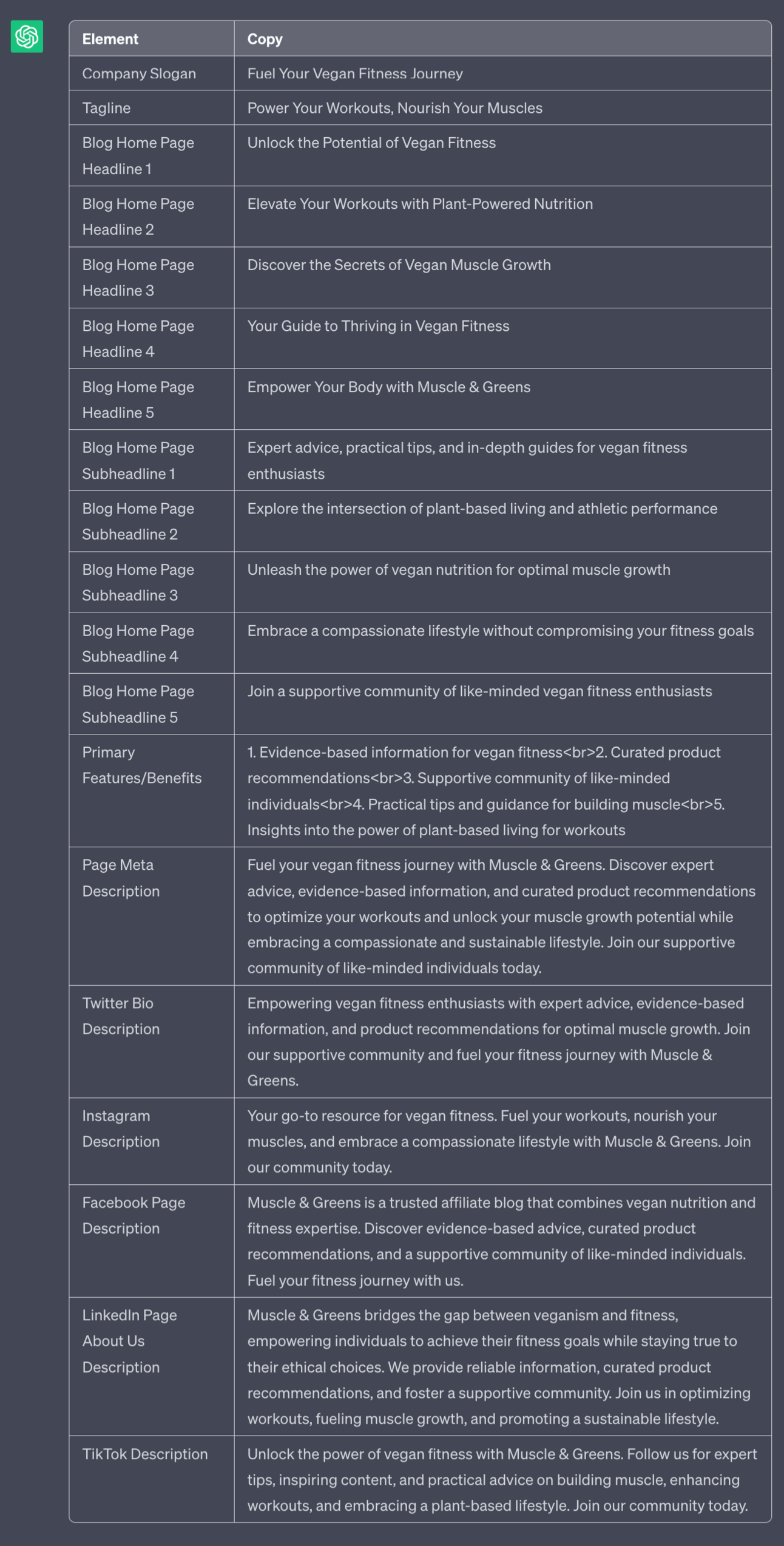 Need additional specific copy? Use the same prompt + details and just change the outputs you want.