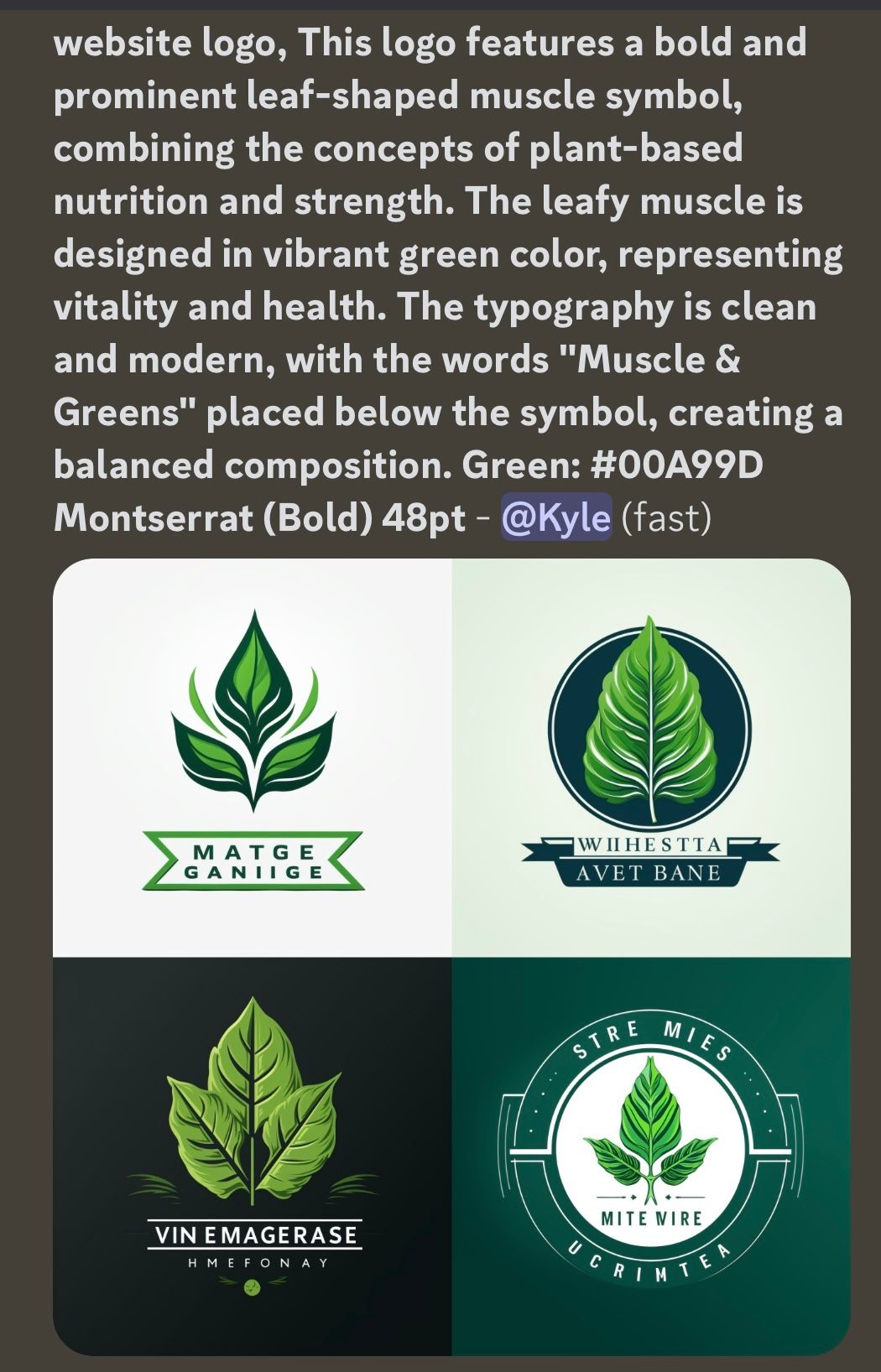 Alternatively you can use an AI generator to create your logo. Here’s Midjourney’s attempt of the first logo (Leafy Muscle):