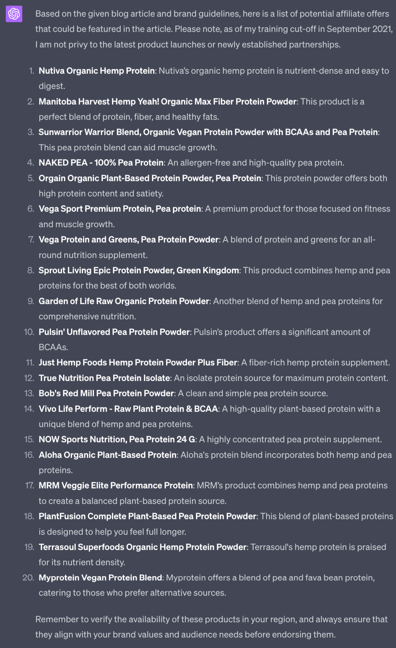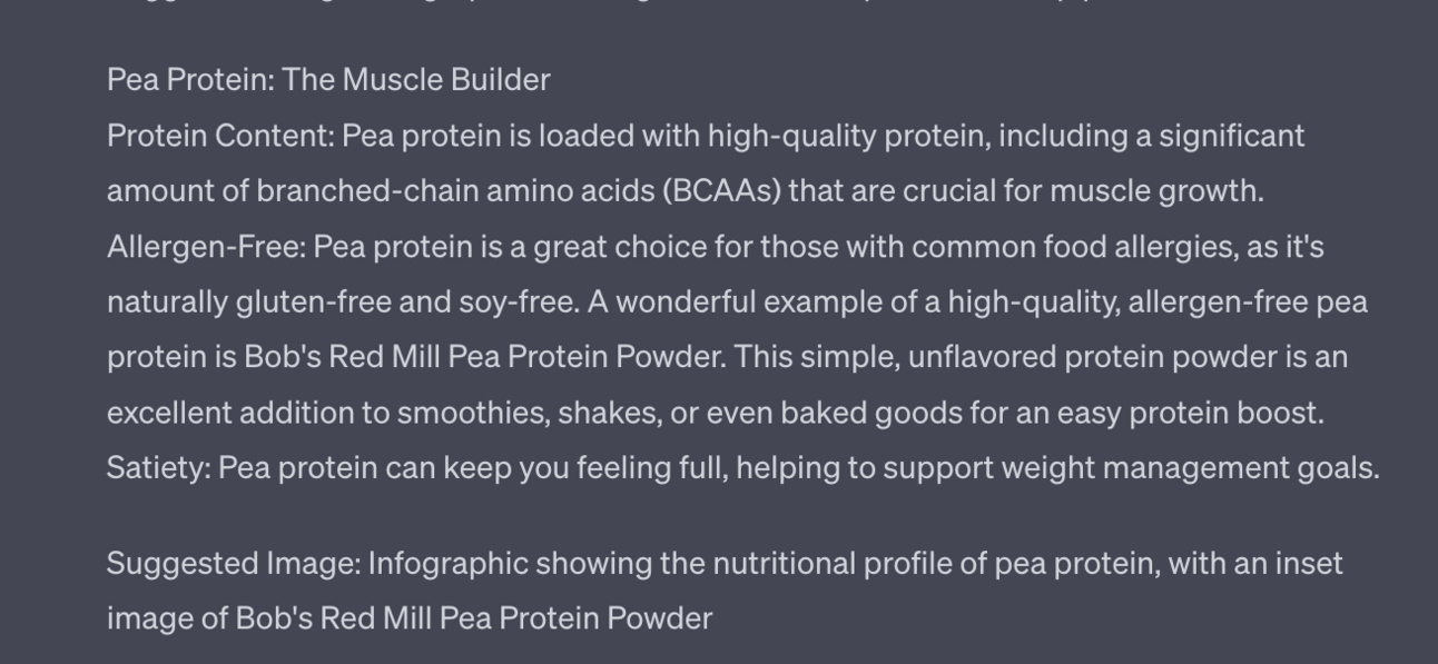 If I just went into ChatGPT and said “write me a blog post on vegan protein sources”. ChatGPT would create something generic that sounds very “AI”.