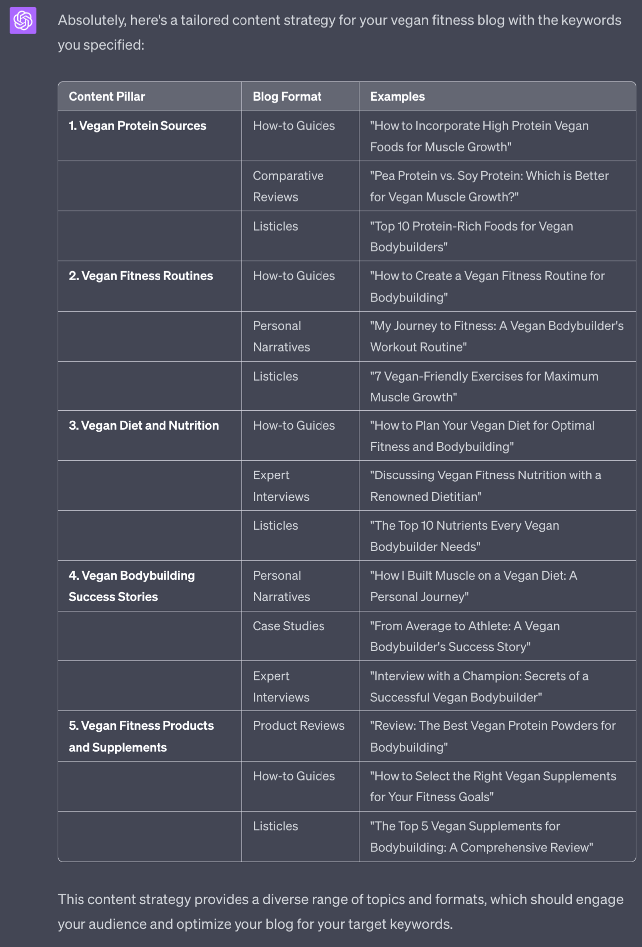 As always if any content pillar or blog format doesn’t interest you ask ChatGPT to make the appropriate changes.