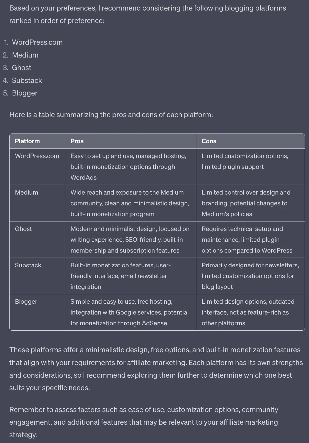 I’ve not asked the prompt to give direct links. This is because ChatGPT tends to make up links when it doesn’t know.