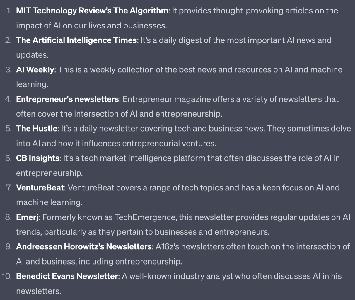 The last two steps have hopefully shown you how much time can be saved compiling a newsletter using AI.