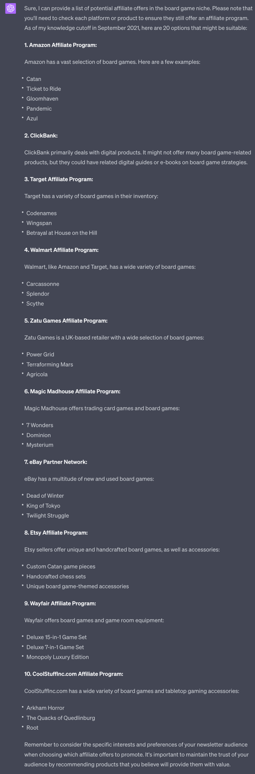 And there are many many affiliate programmes out there. Amazon is one of the largest but we’re going to use ChatGPT to find others.