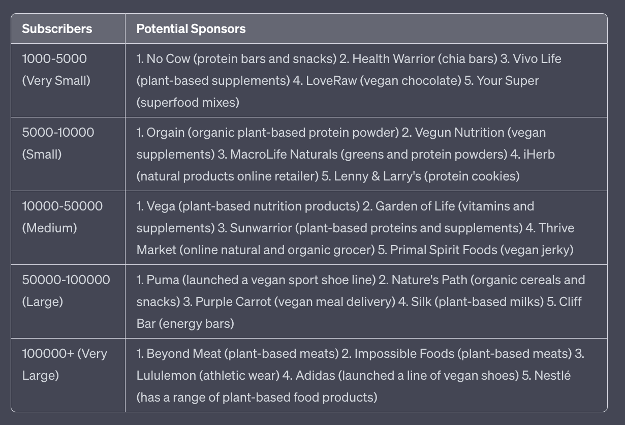 Alternatively you can work with companies that will do outreach for you and help you secure sponsorships. They’ll charge a flat monthly fee, take a commission or both.