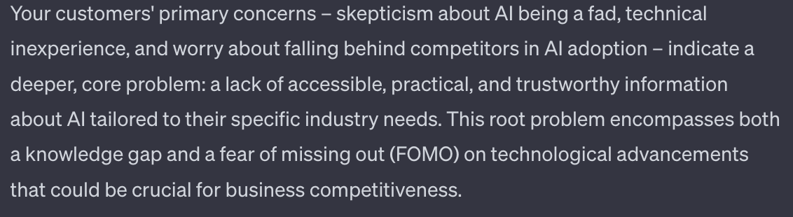 Once you’ve got the customer’s core problem on lock we can formalise a product. Here’s a prompt: