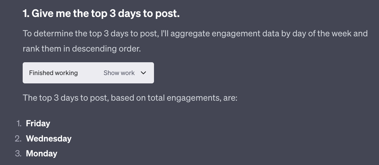 First, ChatGPT tells me my top days.