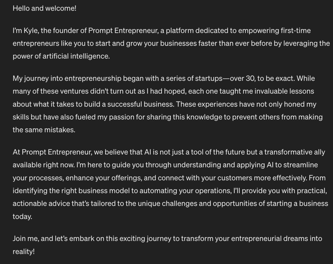 Specifically let’s use this prompt to get started: