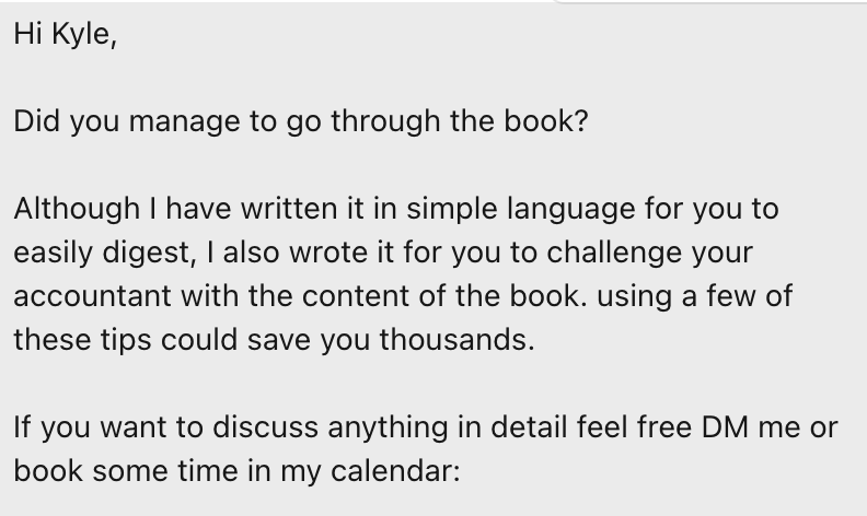 I recently got one email that sent me a 130 page book. Then followed up with this: