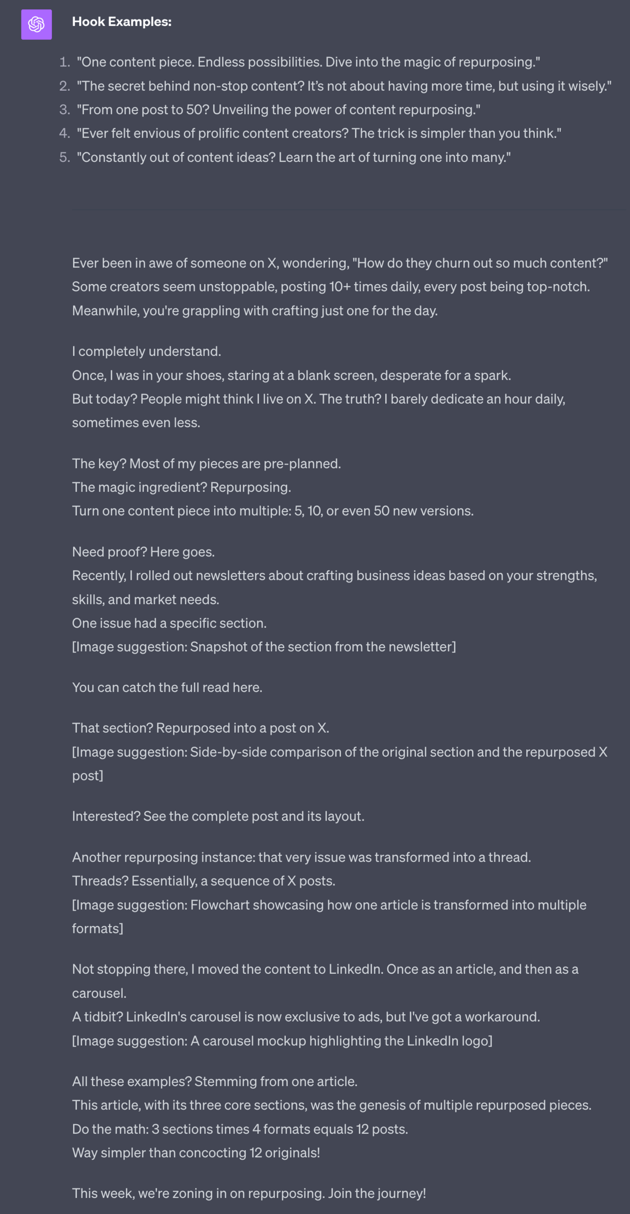 In this Part we’ll get chopping and changing to repurpose our target content piece into multiple formats for X.