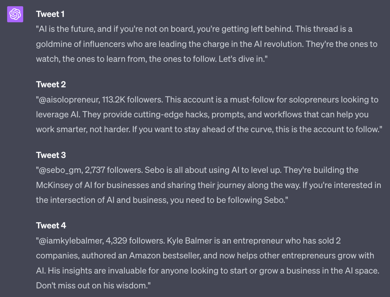 #Influencer details begin#Paste this prompt into ChatGPT then head back to Twitter.