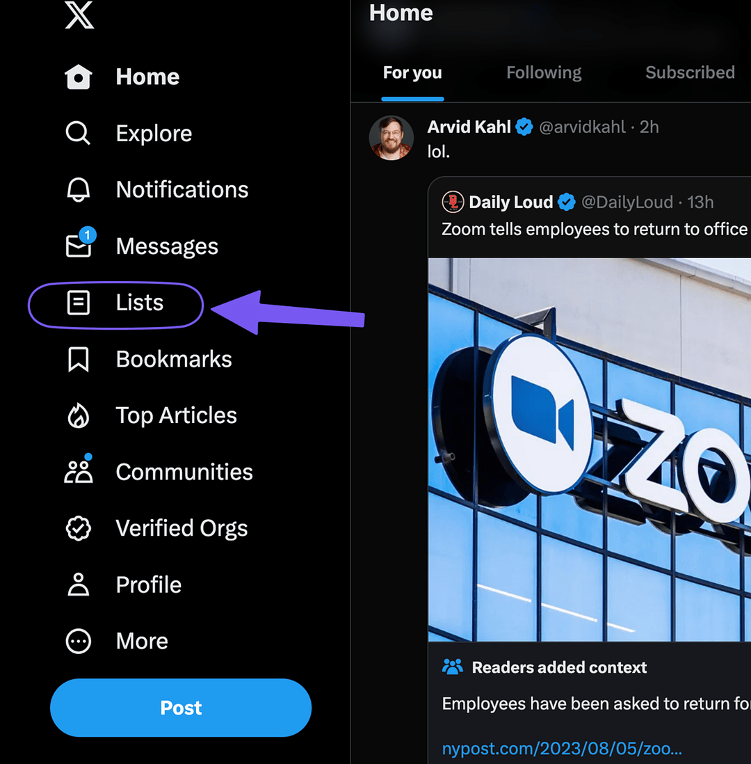 First head to Lists in the Desktop or App version of X.