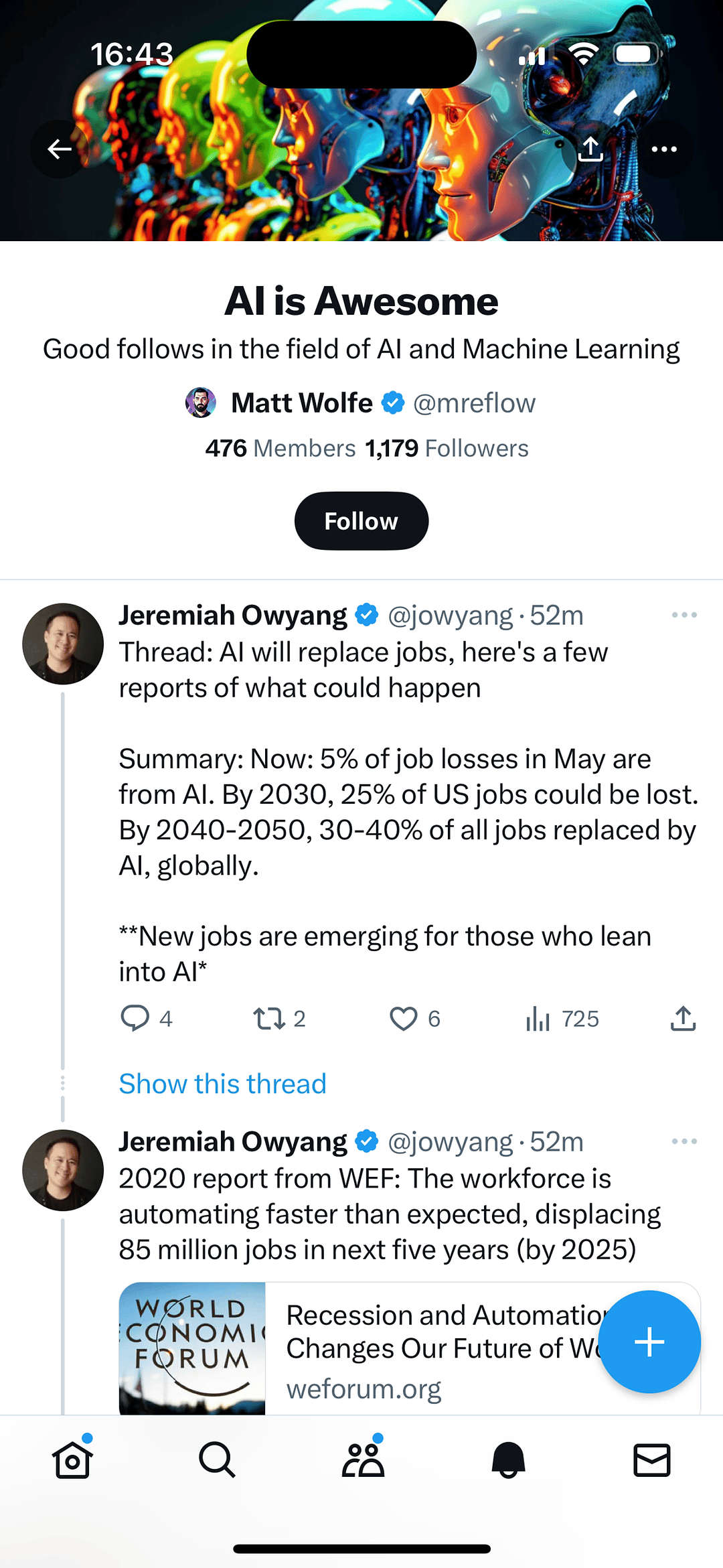 This is a List by @mreflow (Matt Wolfe). He’s already curated 476 other accounts in the AI space. And that List is public.