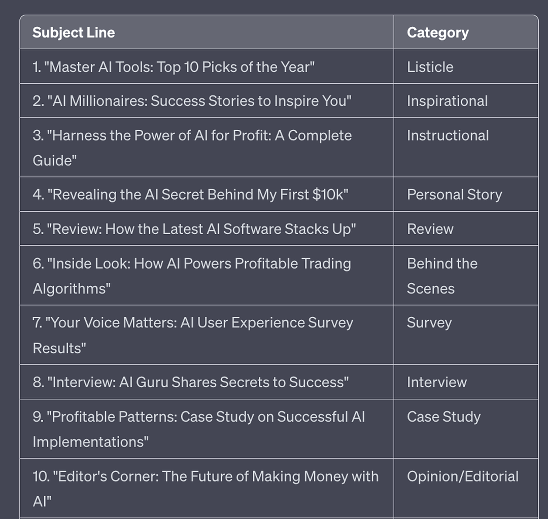 Bonus: try adding the line “Do not provide generic suggestions” to get more creative suggestions.