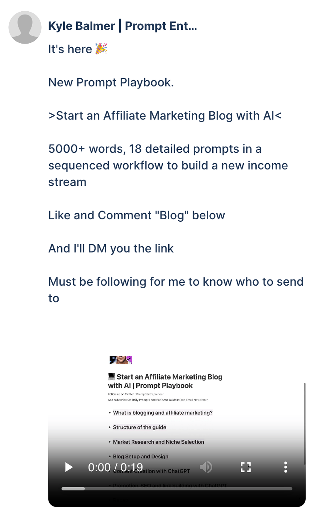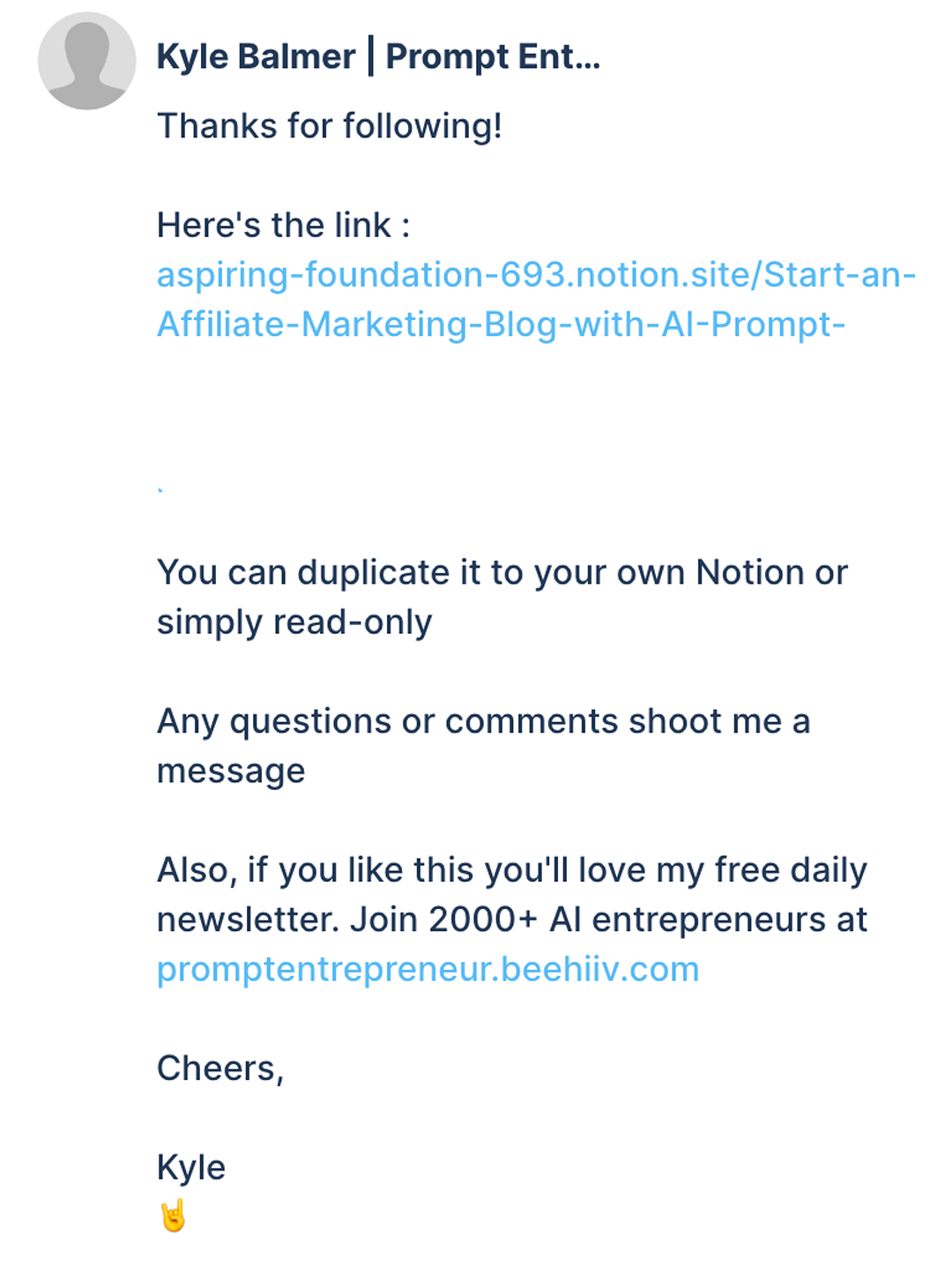 It works on all social media platforms but best on Twitter. Especially when combined with tools like Tweethunter or Hypefury that do the DM’ing for you automatically. Sign up to Tweethunter here (affiliate link). *Sign up to Hypefury - what I currently use (affiliate link).