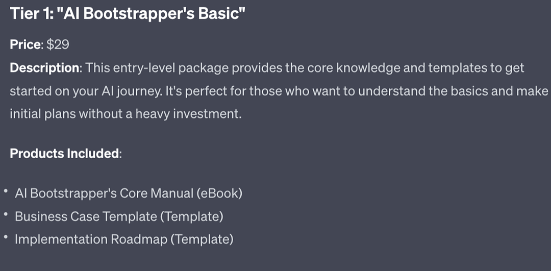 First we’re going to use ChatGPT to flesh out the products in tier 1.