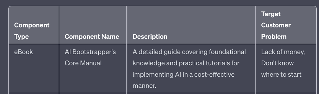 Obviously your components will be different depending on your inputs in the prior Part. And of course feel free to edit and adjust what you get from ChatGPT - it works for you, not the other way around.