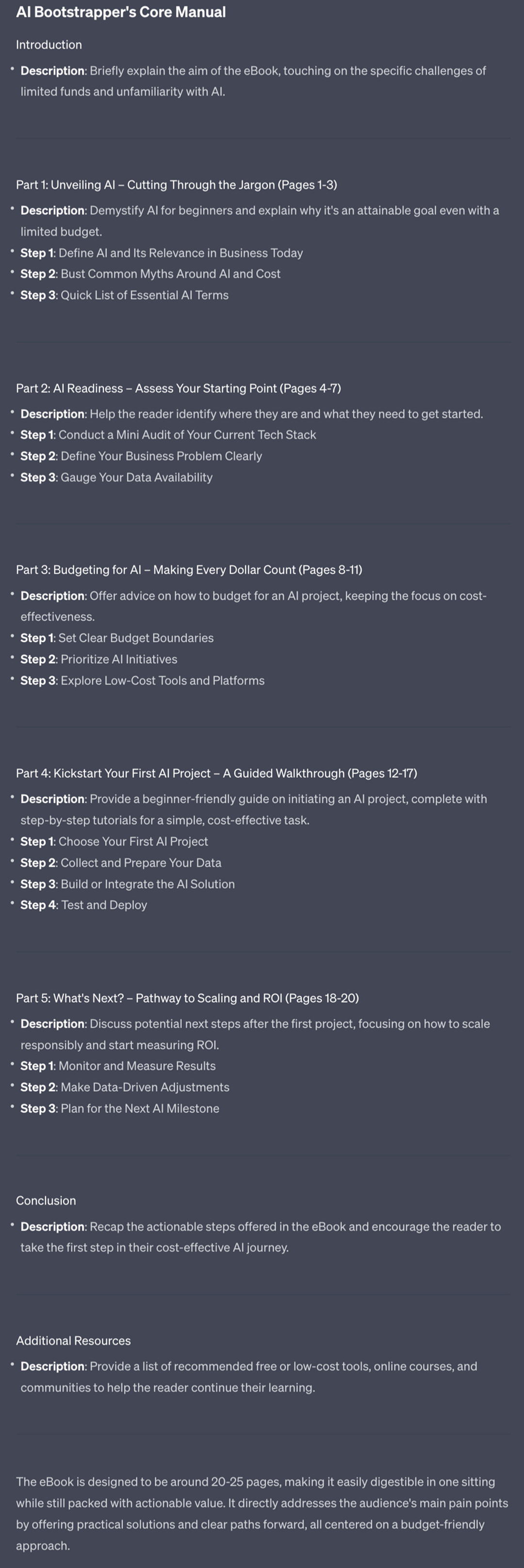 ChatGPT now structures the whole short eBook for me. Pretty great!