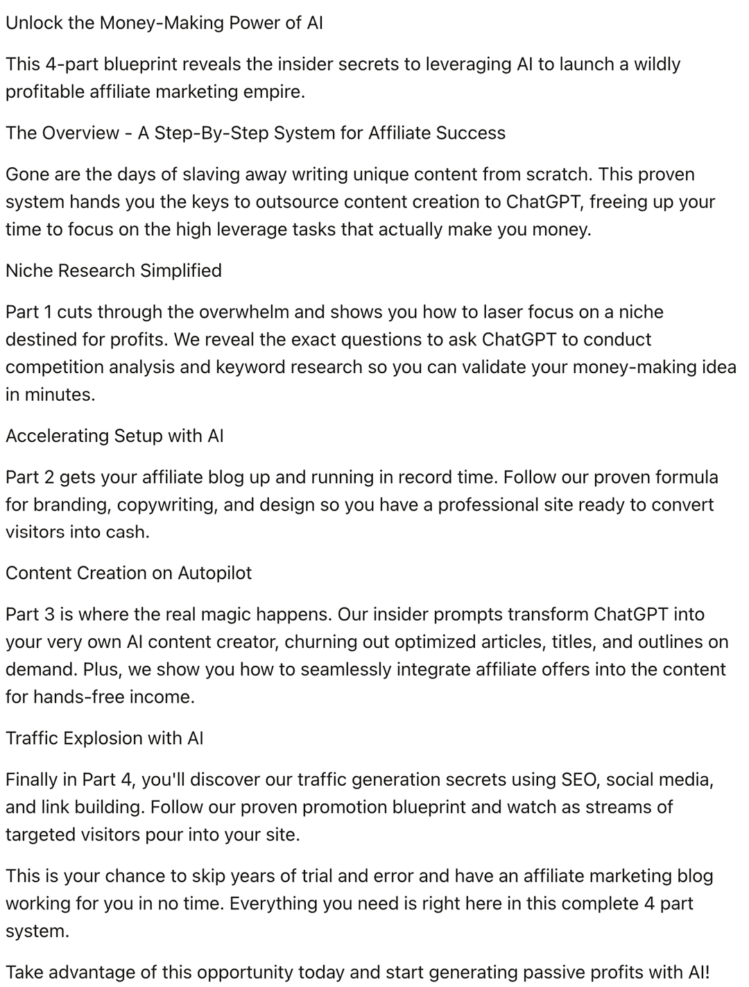 Also make sure to take advantage of Gumroad’s formatting tool to make headers stand out more as the formatting from ChatGPT has been stripped away.