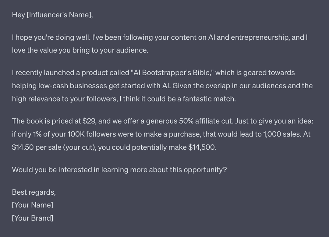 Make sure you first have a relationship with them by engaging in their content and chatting to them on X. Do this in preparation for launching your affiliate campaign.