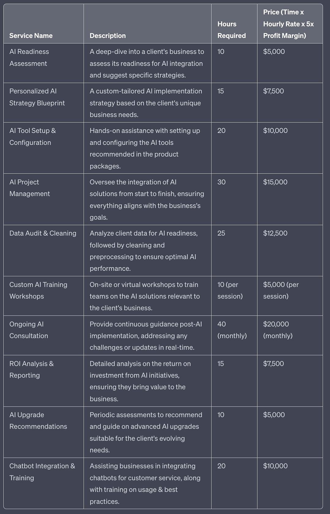 Use this prompt under the Tiers you generated back in Part 1 of this Playbook. This will use the previous tiers to construct service ideas.