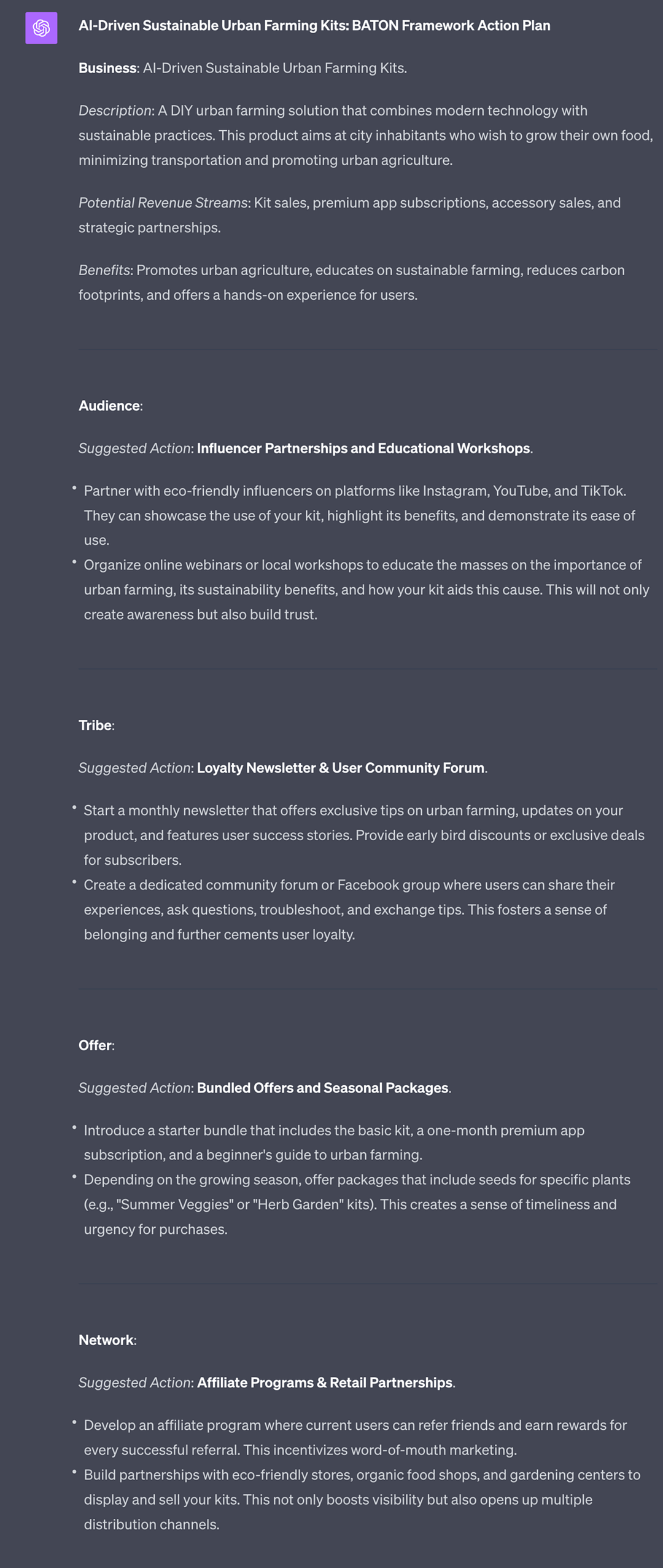 ChatGPT uses the framework to suggest alternatives for each stage of BATON.